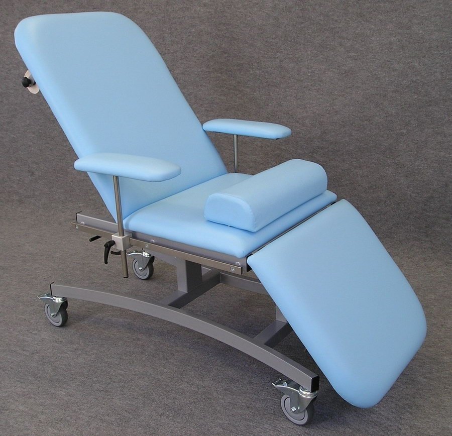 Víceúčelové lehátko. Kovová konstrukce je povrchově upravená práškovou technologií v bílé barvě. Ložná plocha - omyvatelná koženka. Po bočních stranách lůžka jsou nerezové eurolišty na uchycení područek, případně infúzního stojanu nebo jiného příslušenství. Cena bez područek.