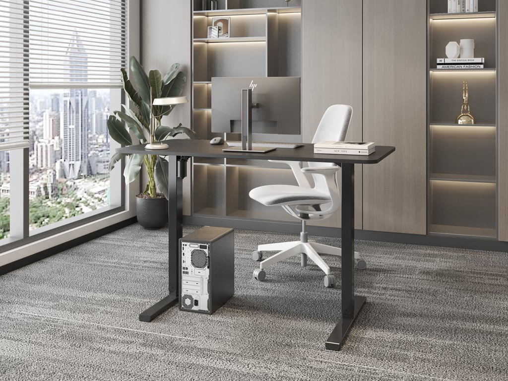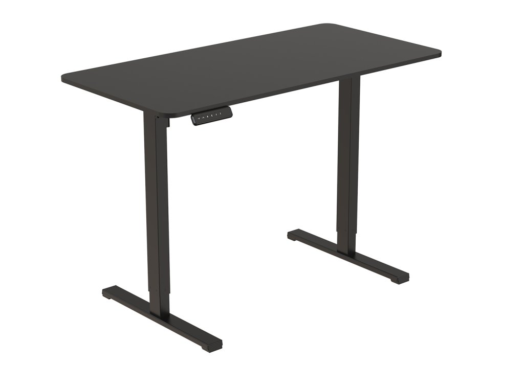 Elektricky výškově stavitelný stůl v rozmezí 750 - 1100 mm. Šířka desky 1200 mm, hloubka desky 600 mm. Plynule nastavitelná výška, dovoluje práci v sedě i ve stoje a zamezuje tak bolestem zad při dlouhodobém sezení. Podnož a deska černá.