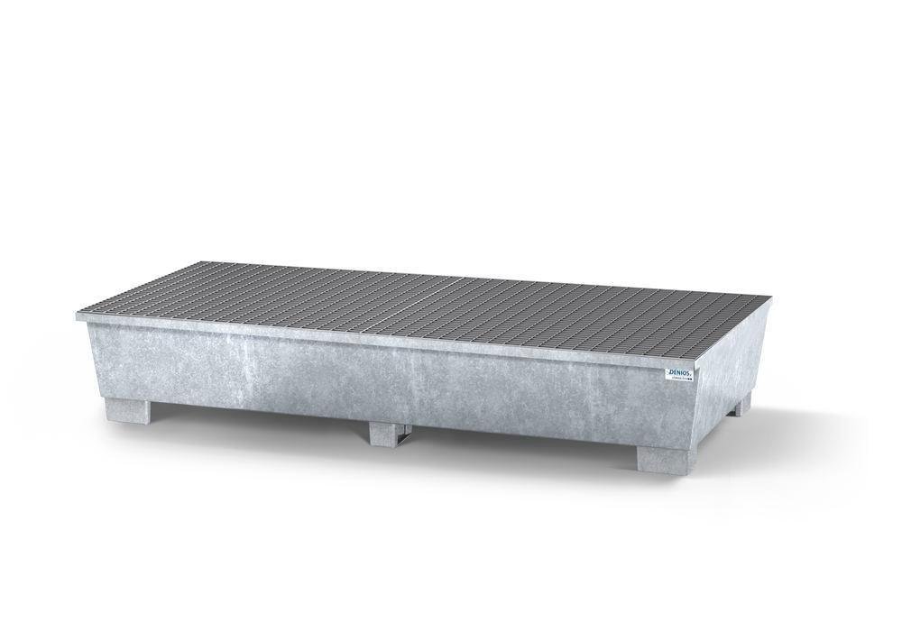 Záchytná vana na nožičkách classic-line ze svařované ocelové konstrukce. Schváleno pro skladování hořlavých kapalin (H224-226) a vodu ohrožujících látek všech tříd. Zinkováno pro optimální ochranu proti korozi. Vyjímatelný zinkovaný rošt.