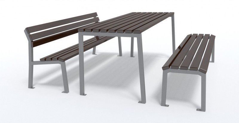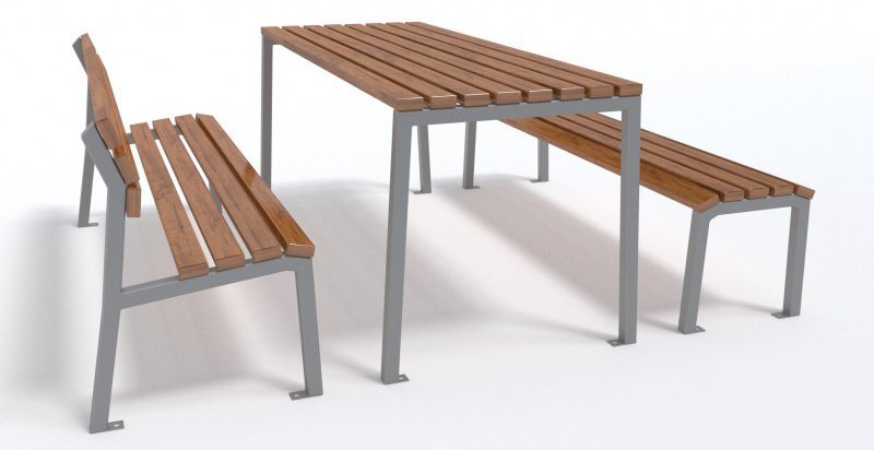 Zahradní souprava z velmi robustní konstrukcí laviček a stolu. Zahradní set obsahuje - 1x stůl + 1x lavice s opěradlem a 1x lavice bez opěradla. Konstrukce jekl 60 x 60 mm, ošetřená vypalovanou barvou nebo žárově zinkovaná. Možnost uchycení k zemi šrouby nebo zabetonováním. Rozměry latí 1500 x 120 x 40 mm. Záruka 2 roky.