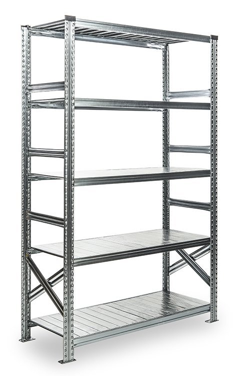 Bezšroubový přístavný regál SUPER určen k nastavování základního regálů SUPER. Možnost doplňovat do nekonečných délek. Provedení pozink, 5 polic, nosnost police 170 kg. Výška 1840 mm, šířka police 1050 mm, hloubka police 320 mm.