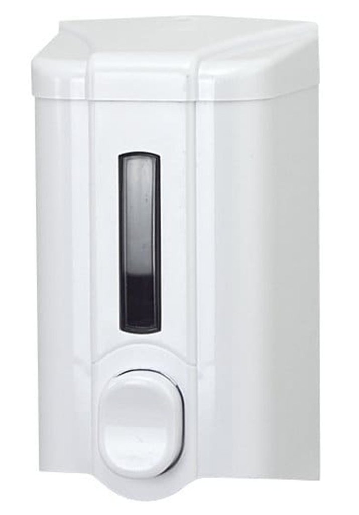Dávkovač tekutého mýdla s praktickým průhledem pro kontrolu naplnění v bílé barvě. celý popis a parametry