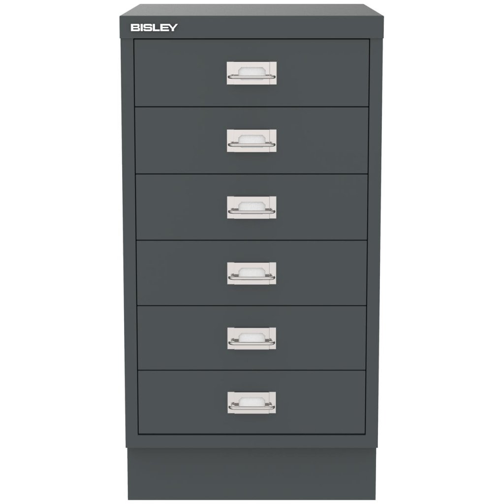 Šestizásuvková kovová skříňka A3, šířka 349, výška 670, hloubka 432 mm. Včetně soklu v černé barvě nebo na přání v barvě skříňky.