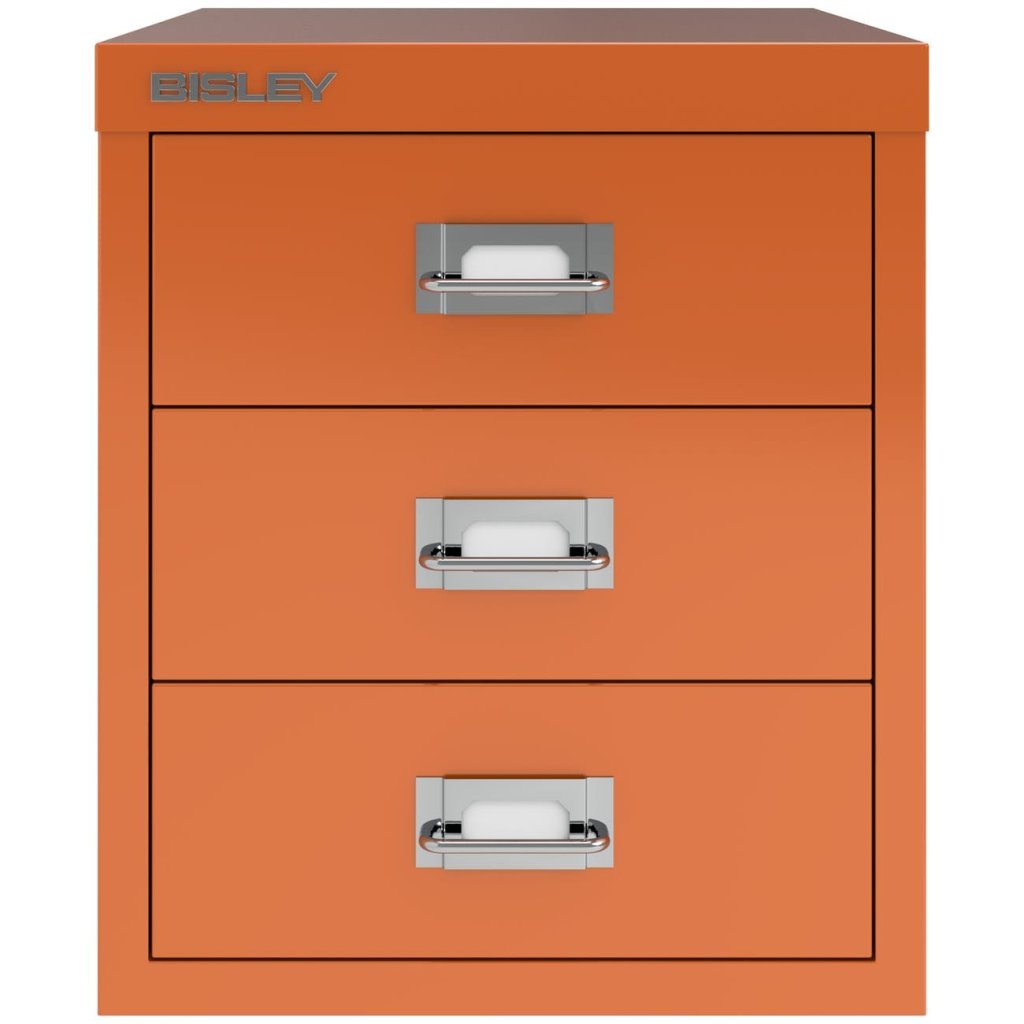 Třízásuvková skříňka bez soklu. Výška 325, šířka 279, hloubka 380 mm. Pro formáty A4, bez zámku, různé barvy.