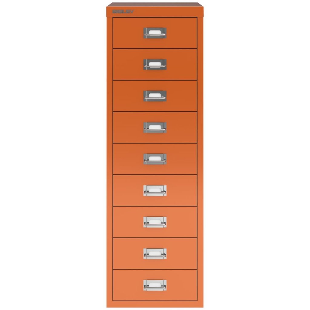 Devítizásuvková skříňka bez soklu (možnost doplnění soklem nebo podstavcem s kolečky). Výška 860, šířka 279, hloubka 380 mm, při použití soklu se výška skříňky zvýší o 80 mm. Pro formáty A4, bez zámku, různé barvy.