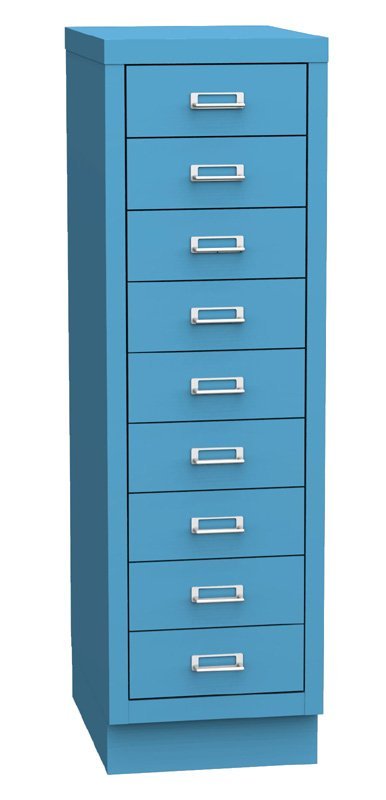 Devítizásuvková kovová skříňka A3, výška 940, šířka 350, hloubka 450 mm. Výška jednotlivých zásuvek 83 mm - viz výkres výrobku.