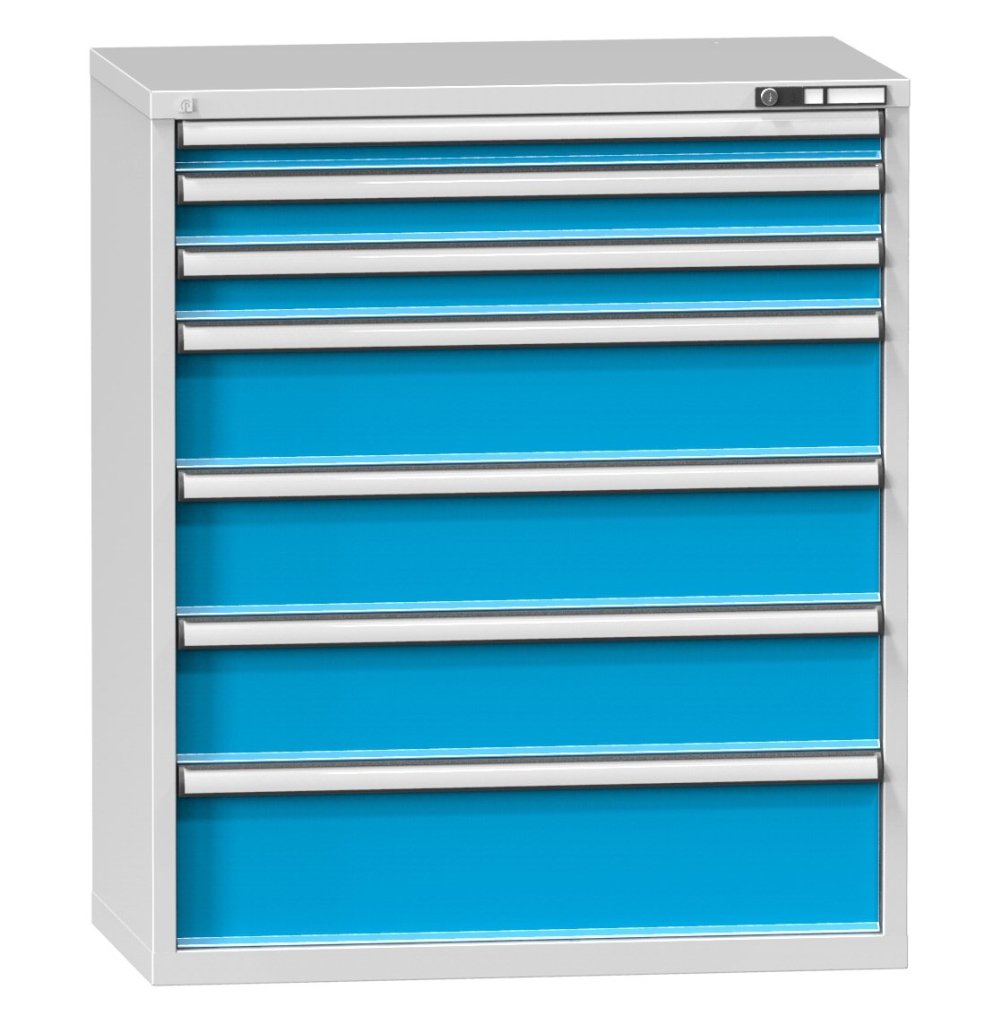 Zásuvková skříňka, 7x zásuvka, výška 1215, šířka 1037, hloubka 630 mm. Vnitřní rozměr zásuvky 918 x 459 mm.