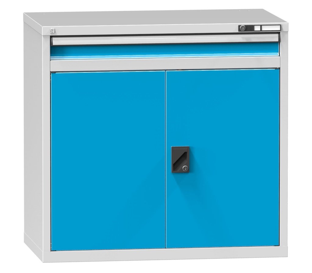 Zásuvková skříňka, 1x zásuvka, 1x dvířka + 2x přestavitelná police, výška 990, šířka 1037, hloubka 630 mm. Vnitřní rozměr zásuvky 918 x 459 mm.