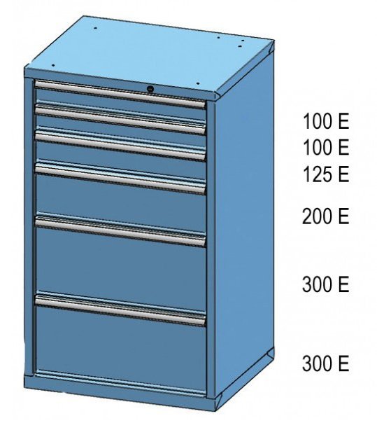 Zásuvková skříňka, 6x zásuvka, výška 1215, šířka 731, hloubka 630 mm. Vnitřní rozměr zásuvky 612 x 459 mm.
