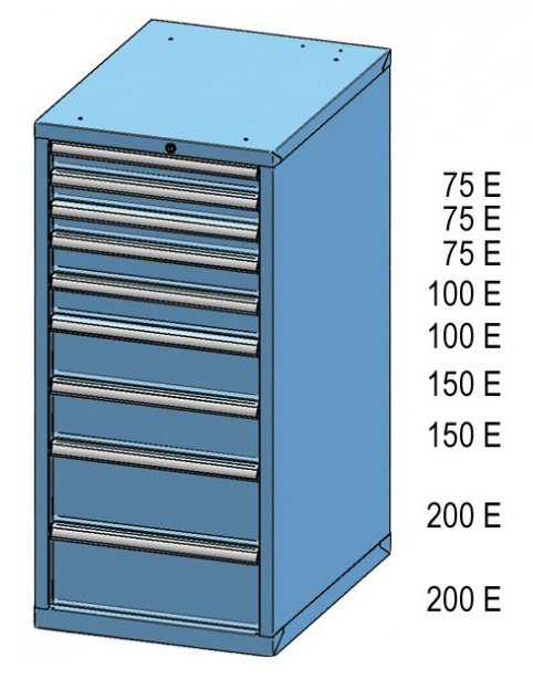 Zásuvková skříňka, 9x zásuvka, výška 1215, šířka 578, hloubka 780 mm. Vnitřní rozměr zásuvky 459 x 612 mm.