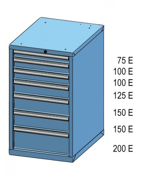 Zásuvková skříňka, 7x zásuvka, výška 990, šířka 578, hloubka 780 mm. Vnitřní rozměr zásuvky 459 x 612 mm.