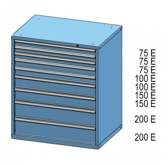 Zásuvková skříňka, 8x zásuvka, výška 1215, šířka 1037, hloubka 780 mm. Vnitřní rozměr zásuvky 918 x 612 mm.