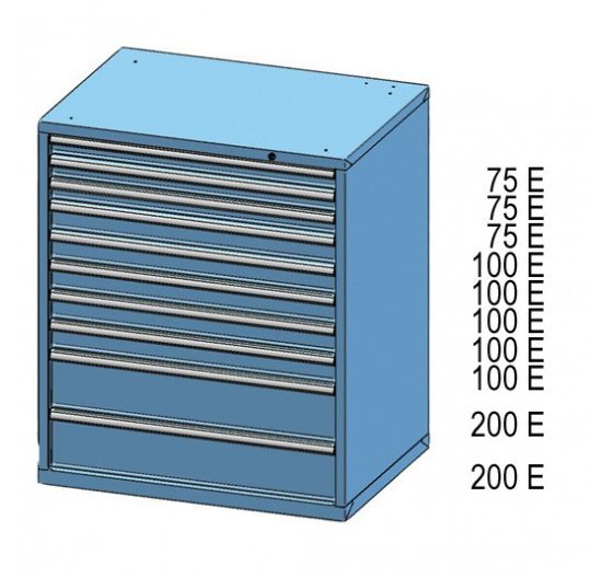 Zásuvková skříňka, 9x zásuvka, výška 1215, šířka 1037, hloubka 780 mm. Vnitřní rozměr zásuvky 918 x 612 mm.