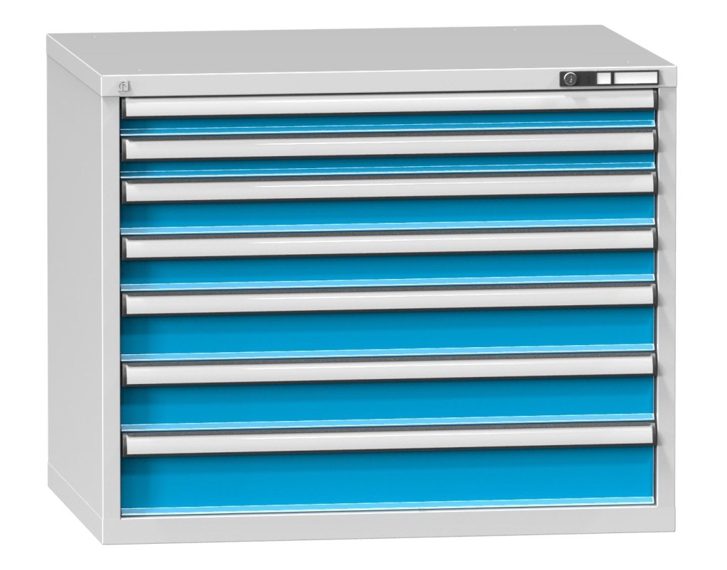 Zásuvková skříňka, 7x zásuvka, výška 840, šířka 1037, hloubka 780 mm. Použití do sestav stolů s hloubkou desky 800 mm. Vnitřní rozměr zásuvky 918 x 612 mm.