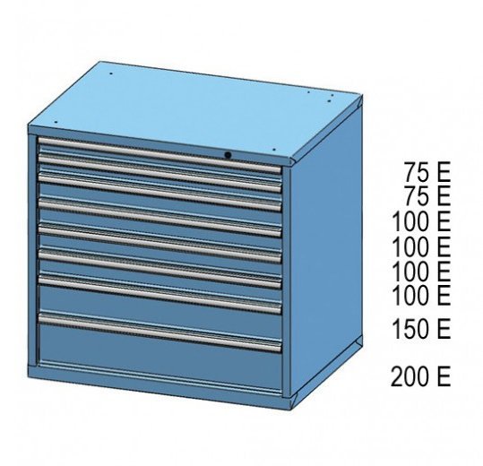 Zásuvková skříňka, 7x zásuvka, výška 990, šířka 1037, hloubka 780 mm. Vnitřní rozměr zásuvky 918 x 612 mm.
