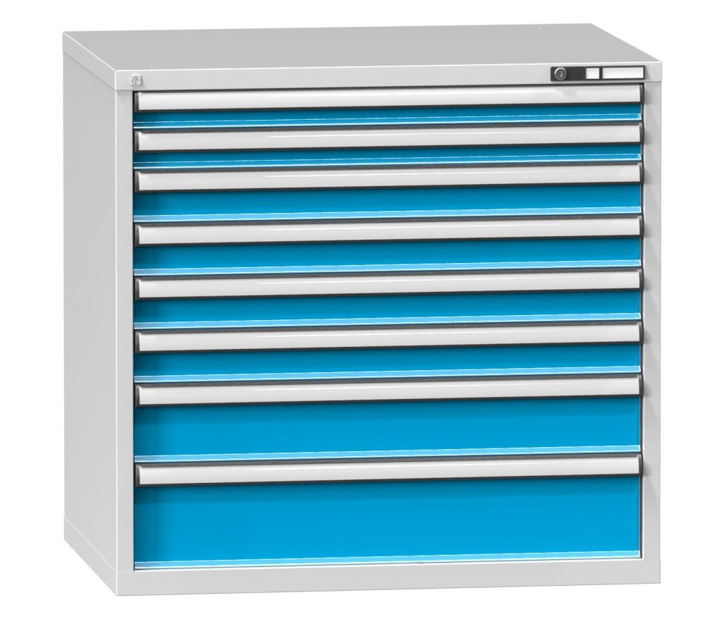 Zásuvková skříňka, 8x zásuvka, výška 990, šířka 1037, hloubka 780 mm. Vnitřní rozměr zásuvky 918 x 612 mm.