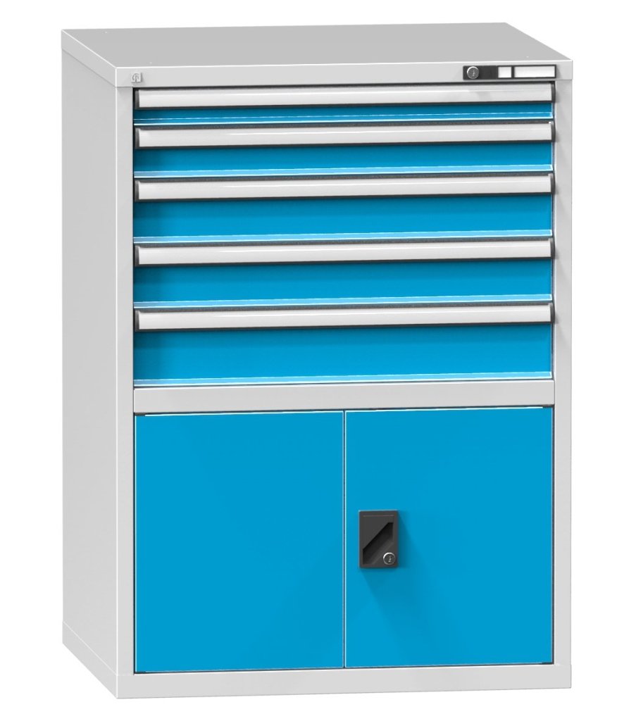 Zásuvková skříňka, 1x dvířka 550 mm + 1x stavitelná police, 1x zásuvka 75E, 1x zásuvka 100E, 2x zásuvka 125E, 1x zásuvka 150E, celý popis a parametry
