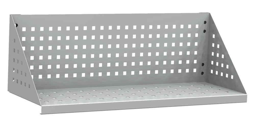 Závěsná kovová police, barva strříbrná RAL 9006. Výška 318 x šířka 1000 x hloubka 315 mm. Nosnost police 40 kg.