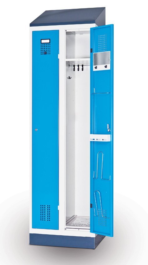 Perforace korpusu - korpus šatníků je opatřen otvory pro spojování šatníků v řadách, otvory pro připevnění soklu nebo šikmé stříšky, otvory pro nasazení na podnož, otvory pro vloženídělící přídavné příčky. |