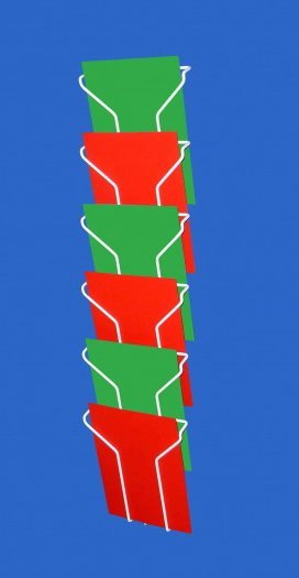 Stojany na prospekty určené k zavěšení na drátěnou síť či paravan. Kovové, barva bílá. Vhodné pro noviny, časopisy, katalogové listy aj. 6 kapes svisle pro formát A4. Celkové rozměry stojanů v mm (V x Š x H) 870 x 235 x 90.
