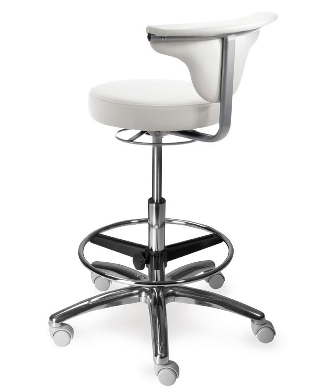 Zdravotnická stolička Form HK-K s kruhovou podnoží, která současně plní i funkci opory nohou. Kostra chrom, výška sezení 44 - 57 cm, čalounění omyvatelná koženka, nosnost 150 kg.