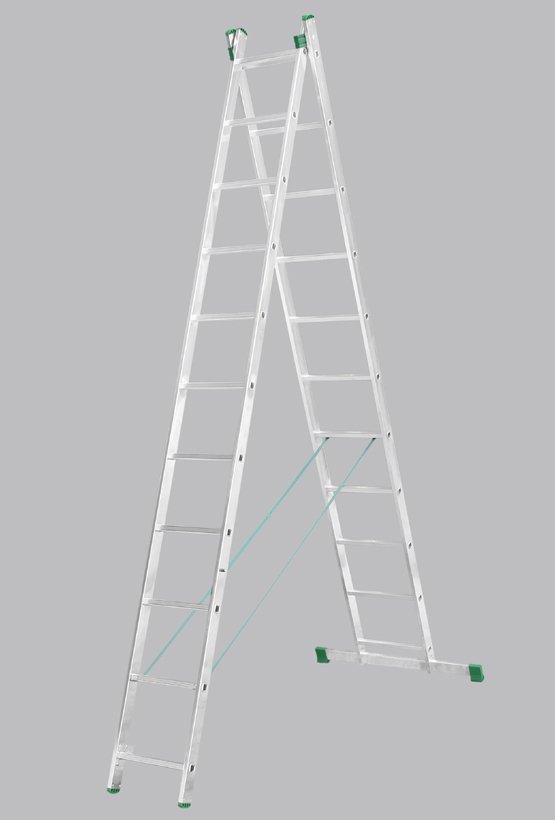 Dvoudílný univerzální žebřík Eurostyl. Počet příček 2x13, max. výsuvná délka 6,26m, šířka 397mm, koncovky zelenočerné. Tyto žebříky jsou vyrobené z odlehčených materiálů s důrazem na lehkost a snadnou manipulaci. Vhodné pro běžné použití v domácnosti i ve firmách. Maximální nosnost 150 kg.