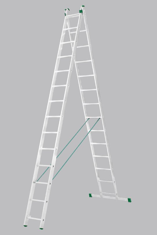 Dvoudílný univerzální žebřík Eurostyl. Počet příček 2x9, max. výsuvná délka 4,28m, šířka 397mm, koncovky zelenočerné. Tyto žebříky jsou vyrobené z odlehčených materiálů s důrazem na lehkost a snadnou manipulaci. Vhodné pro běžné použití v domácnosti i ve firmách. Maximální nosnost 150 kg.