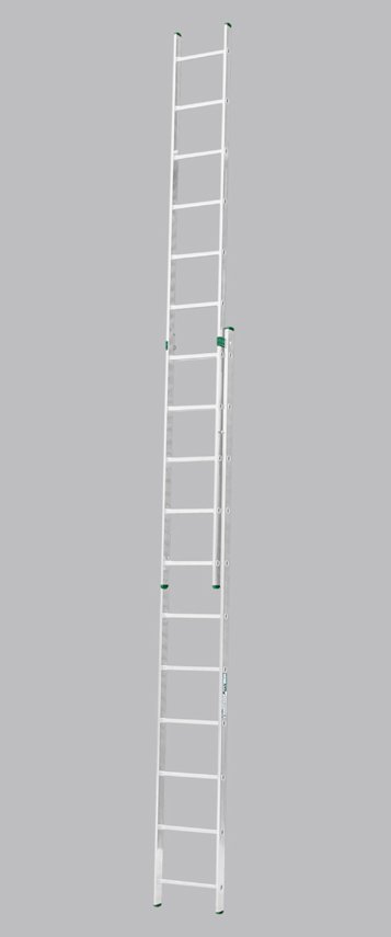 Dvoudílný výsuvný žebřík Forte s lanem a pojezdovými kolečky pro lepší manipuaci. Počet příček 2x16, max. výsuvná délka 8,36 m, šířka 412 mm, koncovky žlutočerné. Tyto žebříky jsou vyrobené tak, aby splňovaly vysokou odolnost a spolehlivost při zachování co možná nejmenší hmotnosti. Maximální nosnost 150 kg. Lano umožňuje prodloužit žebřík ve svislé poloze.