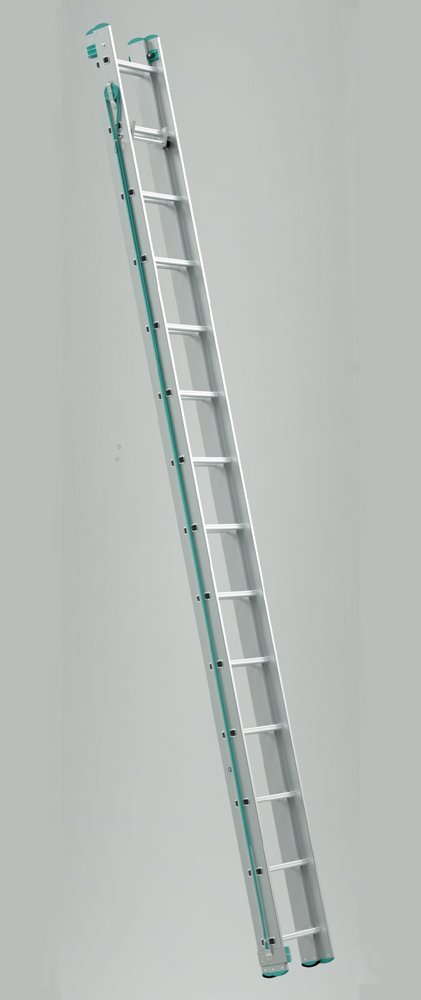 Dvoudílný výsuvný žebřík Forte s lanem a pojezdovými kolečky pro lepší manipuaci. Počet příček 2x16, max. výsuvná délka 8,36 m, šířka 412 mm, koncovky žlutočerné. Tyto žebříky jsou vyrobené tak, aby splňovaly vysokou odolnost a spolehlivost při zachování co možná nejmenší hmotnosti. Maximální nosnost 150 kg. Lano umožňuje prodloužit žebřík ve svislé poloze.