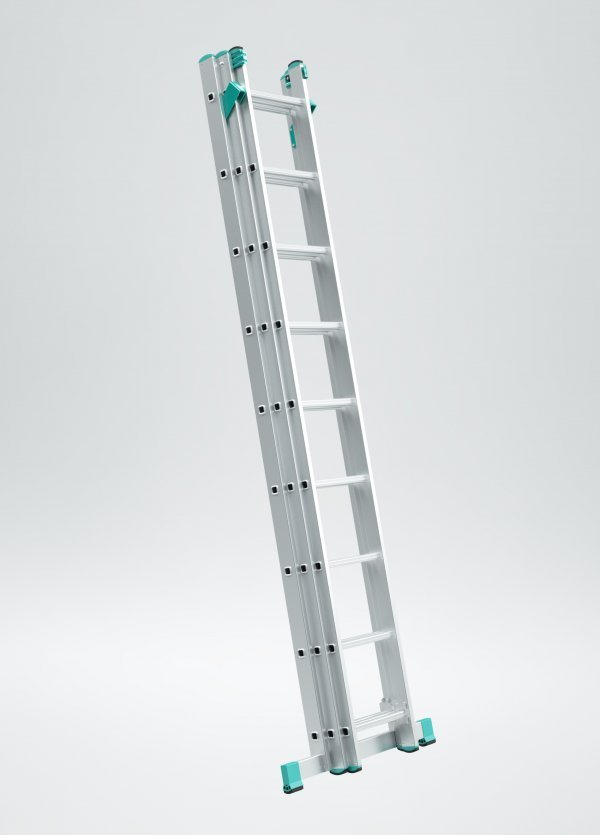 Trojdílný univerzální žebřík Eurostyl s úpravou na schody. Počet příček 3x9, max. výsuvná délka 5,69 m, šířka 454 mm, koncovky zelenočerné. Tyto žebříky jsou vyrobené z odlehčených materiálů s důrazem na lehkost a snadnou manipulaci. Vhodné pro běžné použití v domácnosti i ve firmách. Maximální nosnost 150 kg.
