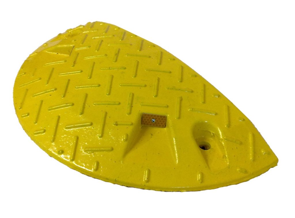 Stavebně-dopravní zařízení ke snížení nežádoucích rychlostí vozidel nebo k dodržování dovolených rychlostí vozidel na místních komunikacích. Použití – silnice, parkoviště, vjezdy do objektů. Barva žlutá, pro rychlost 10 km/h. Vyrobeno z odolné recyklované směsi. Dobře viditelné v noci. Výška 60 x šířka 500 x hloubka 430 mm.